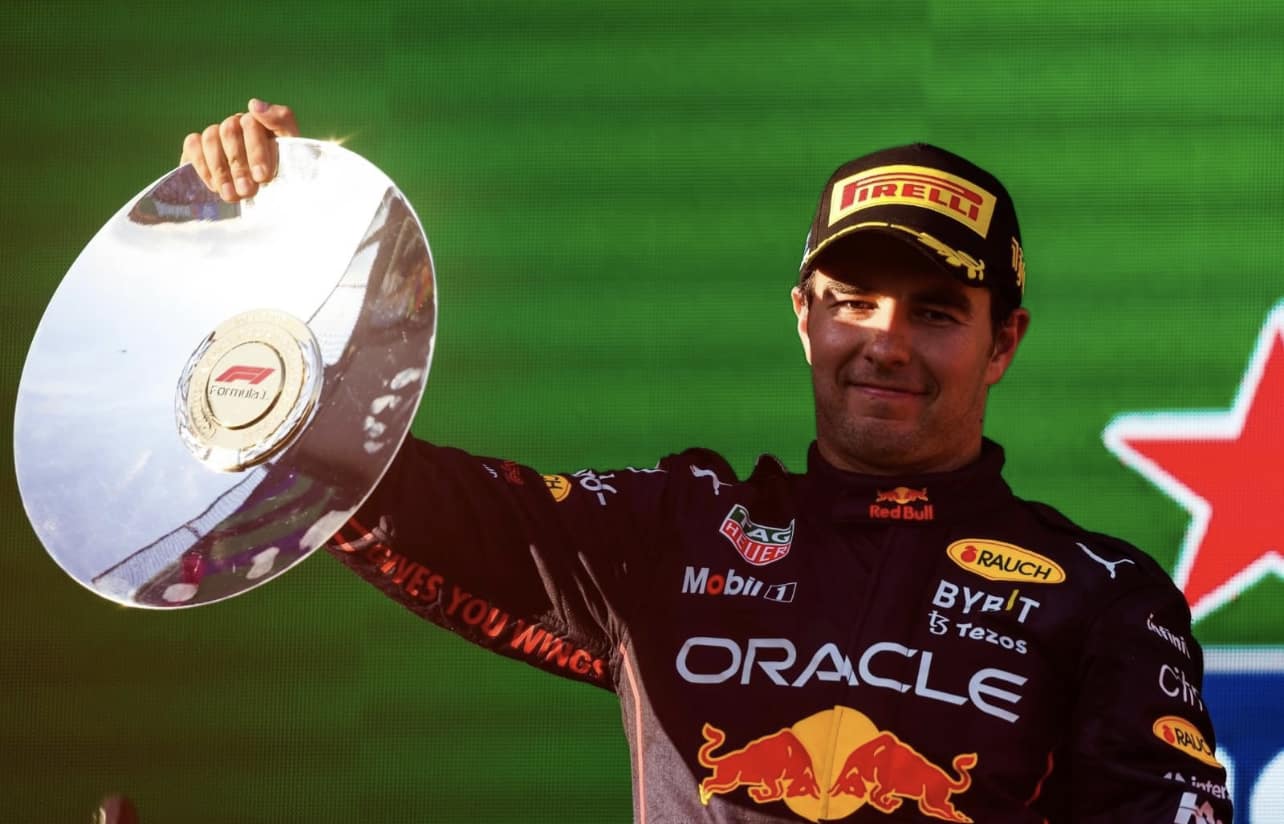 Sergio El Checo Pérez sube al podio al conseguir el segundo lugar en el Gran