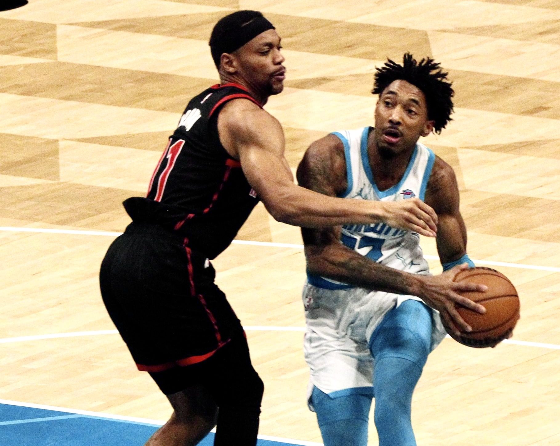 Con sus nuevas figuras rescatadas en el intercambio invernal. Los Hornets ganaron 115 a 106