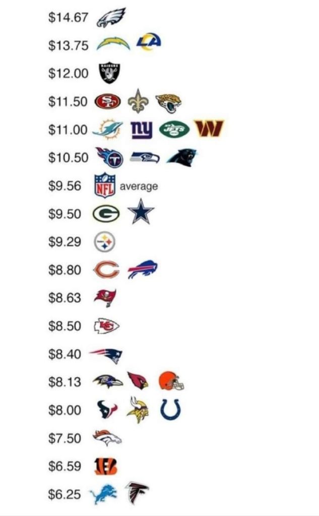 Es obvio que en todo evento los precios de la comida y la bebida son altos, pero la NFL y sus estadios han abusado de manera ridícula. El aficionado promedio de las Panteras, o el visitante promedio al Estadio, es básicamente asaltado. El costo promedio para una familia de 4 personas, 2 niños y 2 adultos, incluidos boletos, estacionamiento, comida, bebida y “recuerditos” fue de $602 el año pasado. Y hay quien dice que sale “barato” pues si estuviéramos en Las Vegas para ver a los Raiders estaríamos hablando de $801. Tampoco es sorpresa que uno de los promedios más bajos esté aquí cerca, con los Halcones de Atlanta, donde la visita sale en $541.